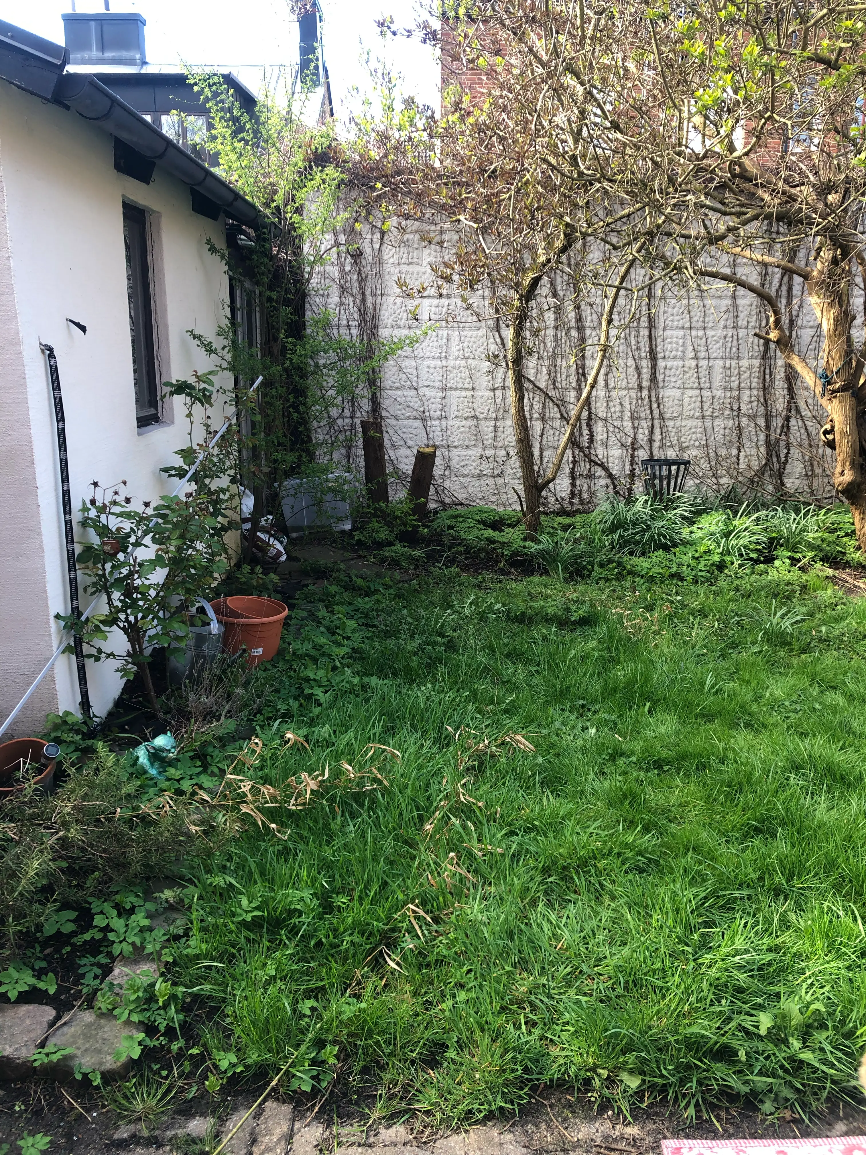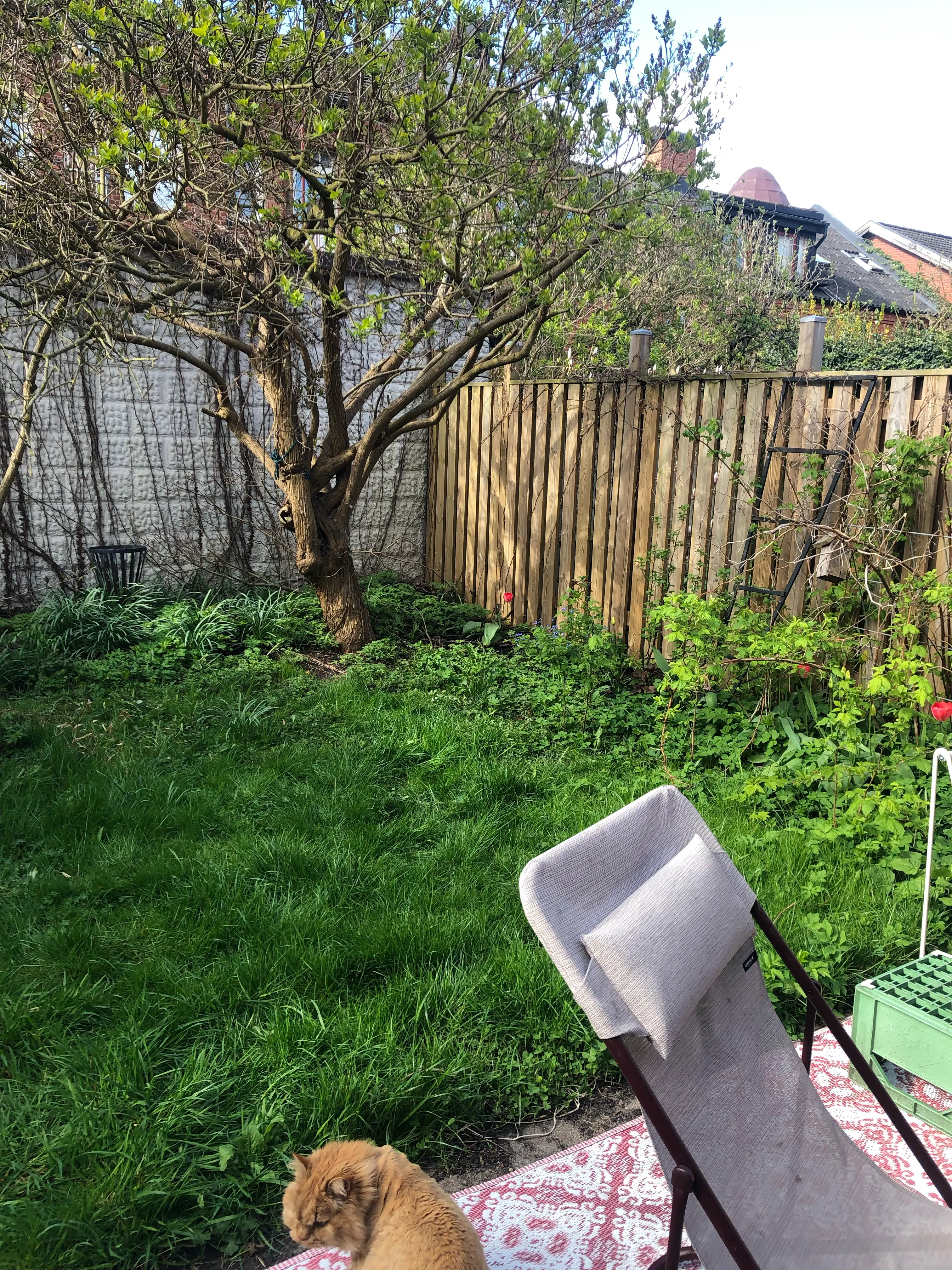 Vi går genom huset och ut genom altandörren till familjens lilla täppa som omgärdas av höga plank på båda sidor mot grannarna och en mur på kortsidan läng ner i trädgården. Vilken oas tänker jag!! Den är fullproppad och övervuxen av växlighet! Läckert hinner jag tänka, men samtidigt gör det att trädgården känns mindre och svår använda och njuta av. Naturen har tagit över på ett sätt som i och för sig kan vara härligt men…