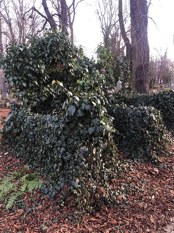 Père Lachaise är Paris största kyrkogård, mer känd och besöks av många, och även där kan man se hur naturen tar vid på vissa ställen även om den hålls mer tuktad. Här växer vildvinet frodigt, vackra höga träd ger svalkande skugga och snåriga buskar skapar en skön oas i den bullriga staden.